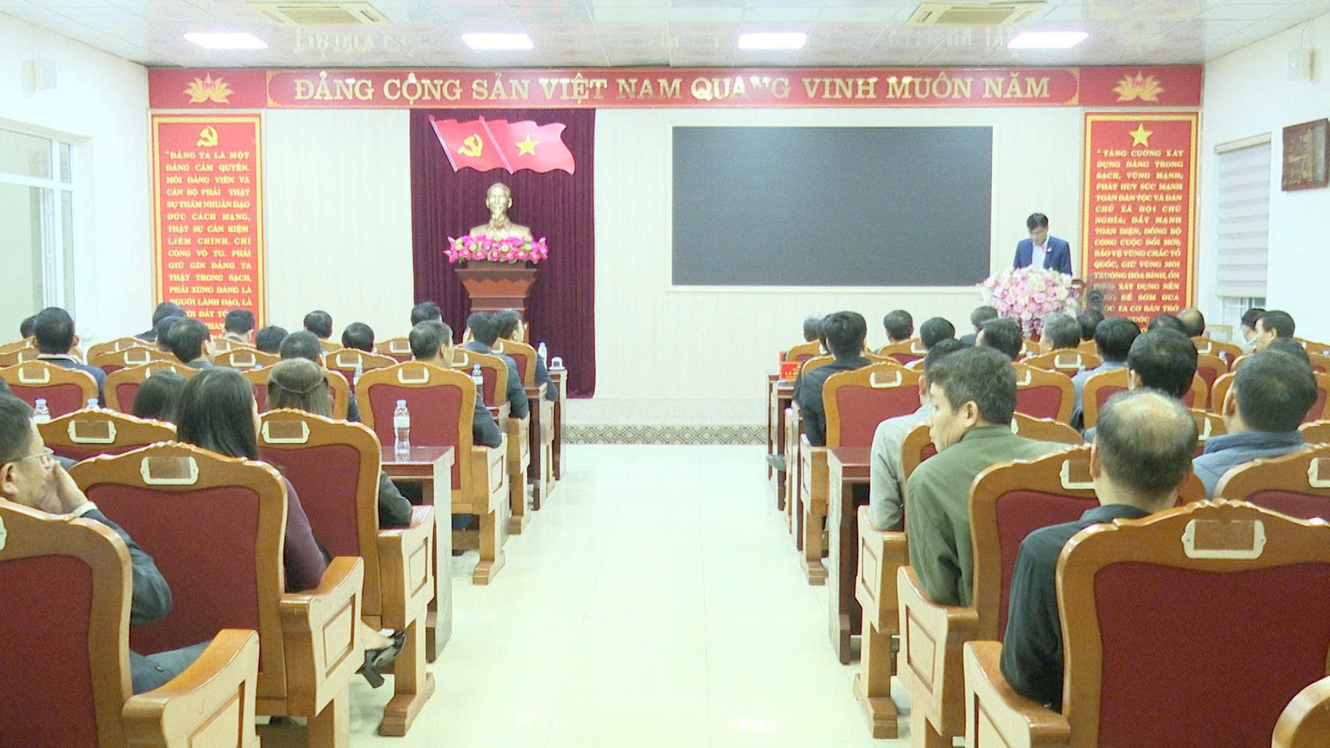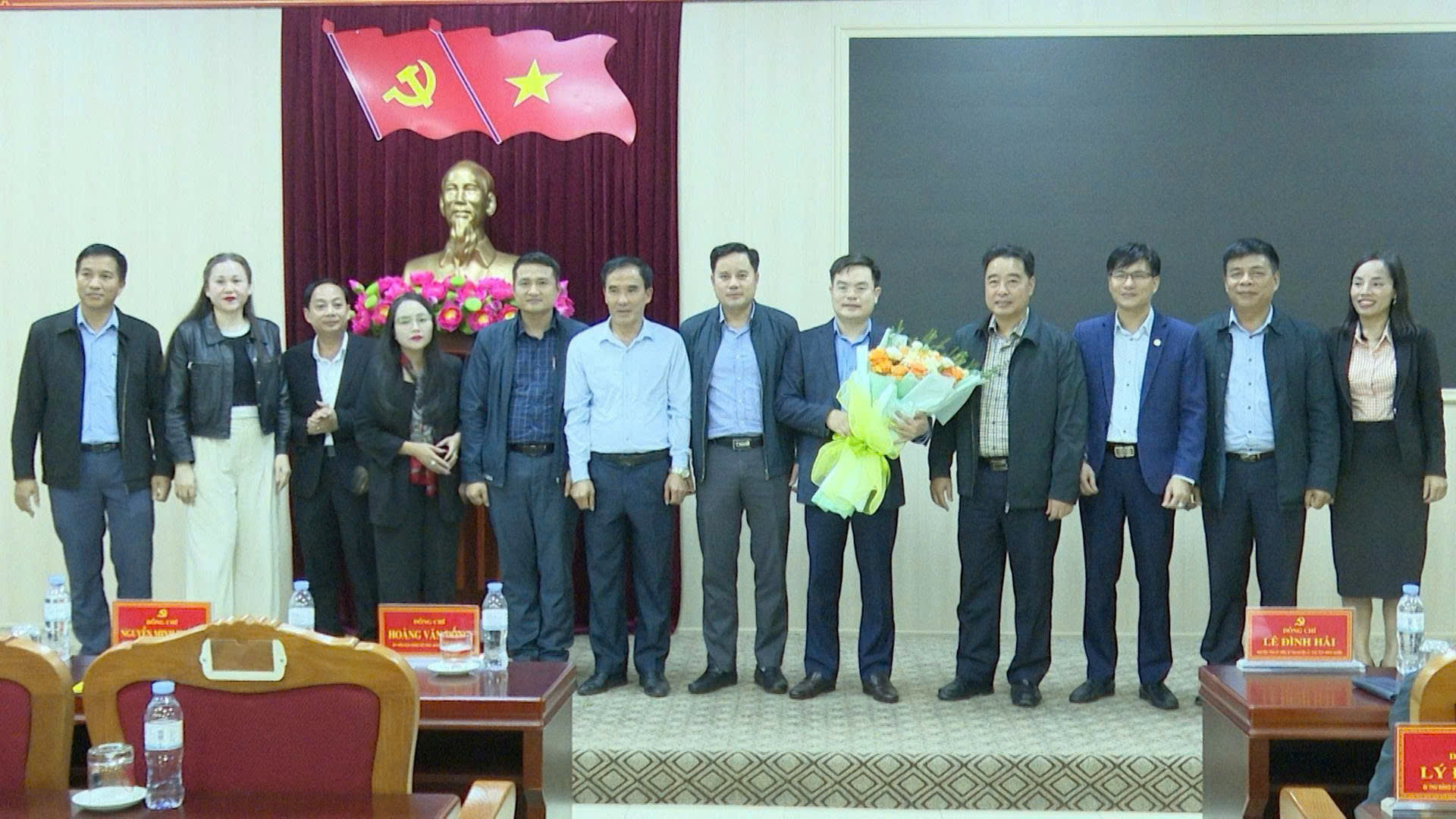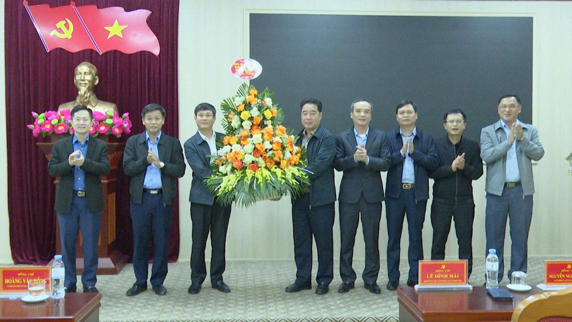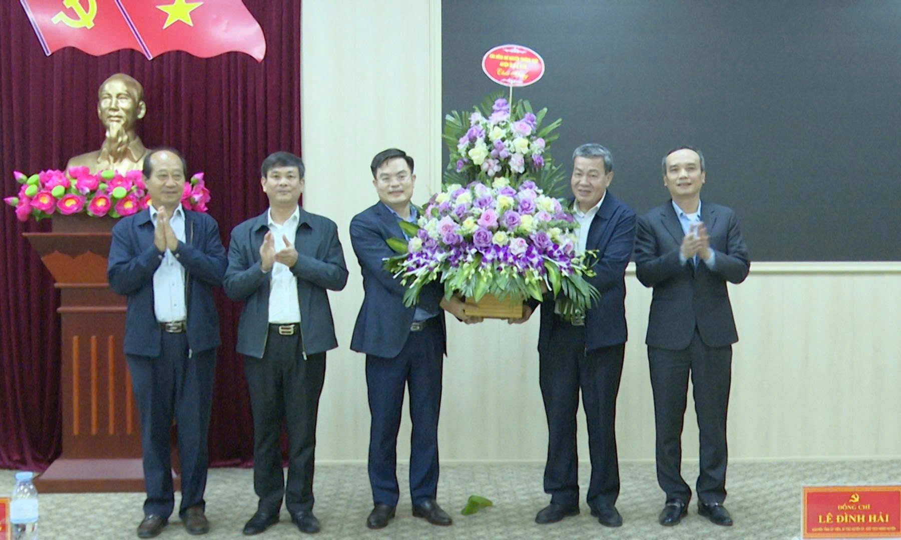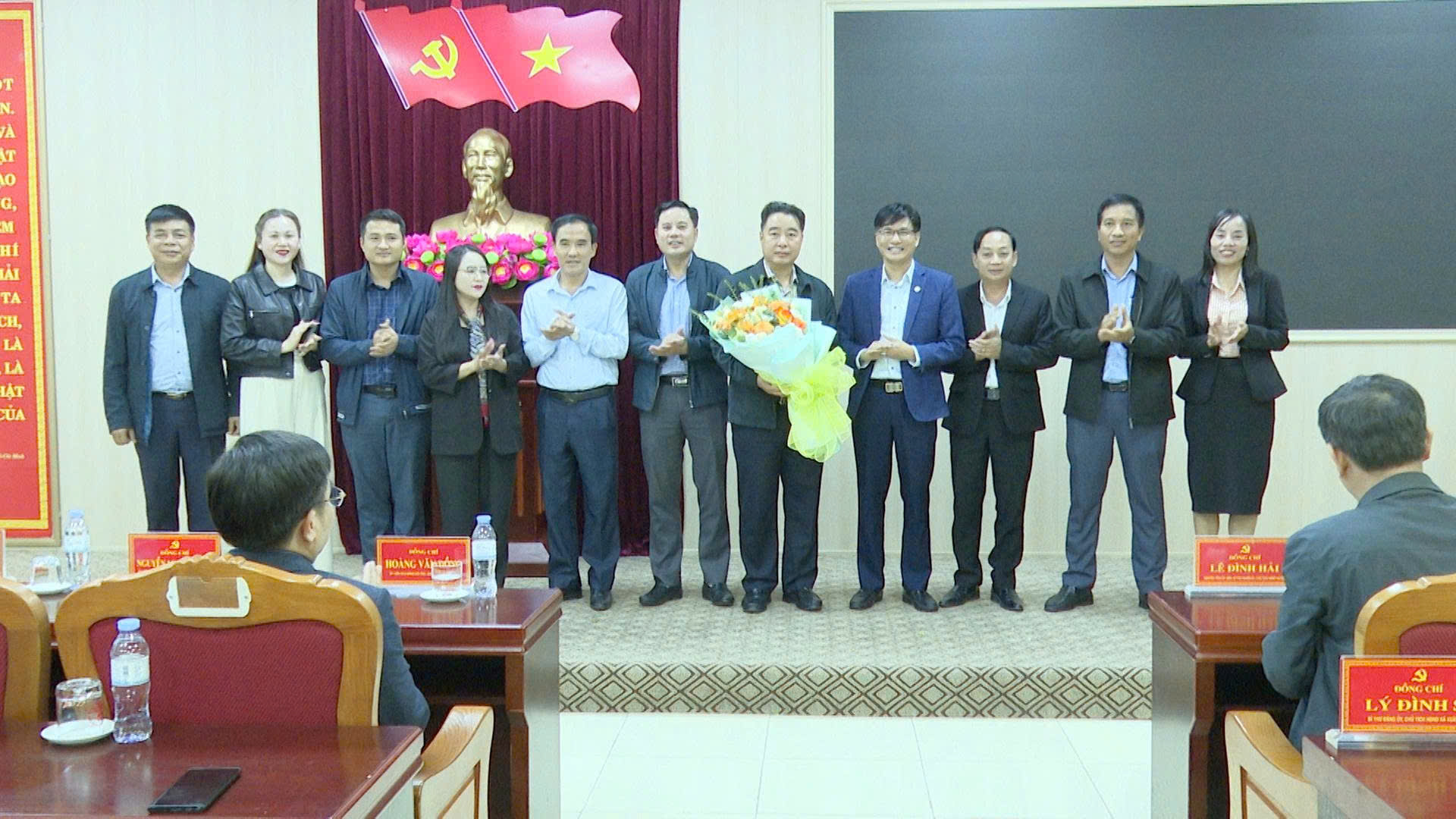 Các đồng chí nguyên Thường trực Huyện uỷ Thọ Xuân, đại diện Đảng uỷ các xã và Ban Thường vụ Đảng uỷ xã Sao Vàng đã tặng hoa chúc mừng đồng chí Nguyễn Minh Hoàng, Tỉnh uỷ viên, Bí thư Đảng uỷ xã Sao Vàng.