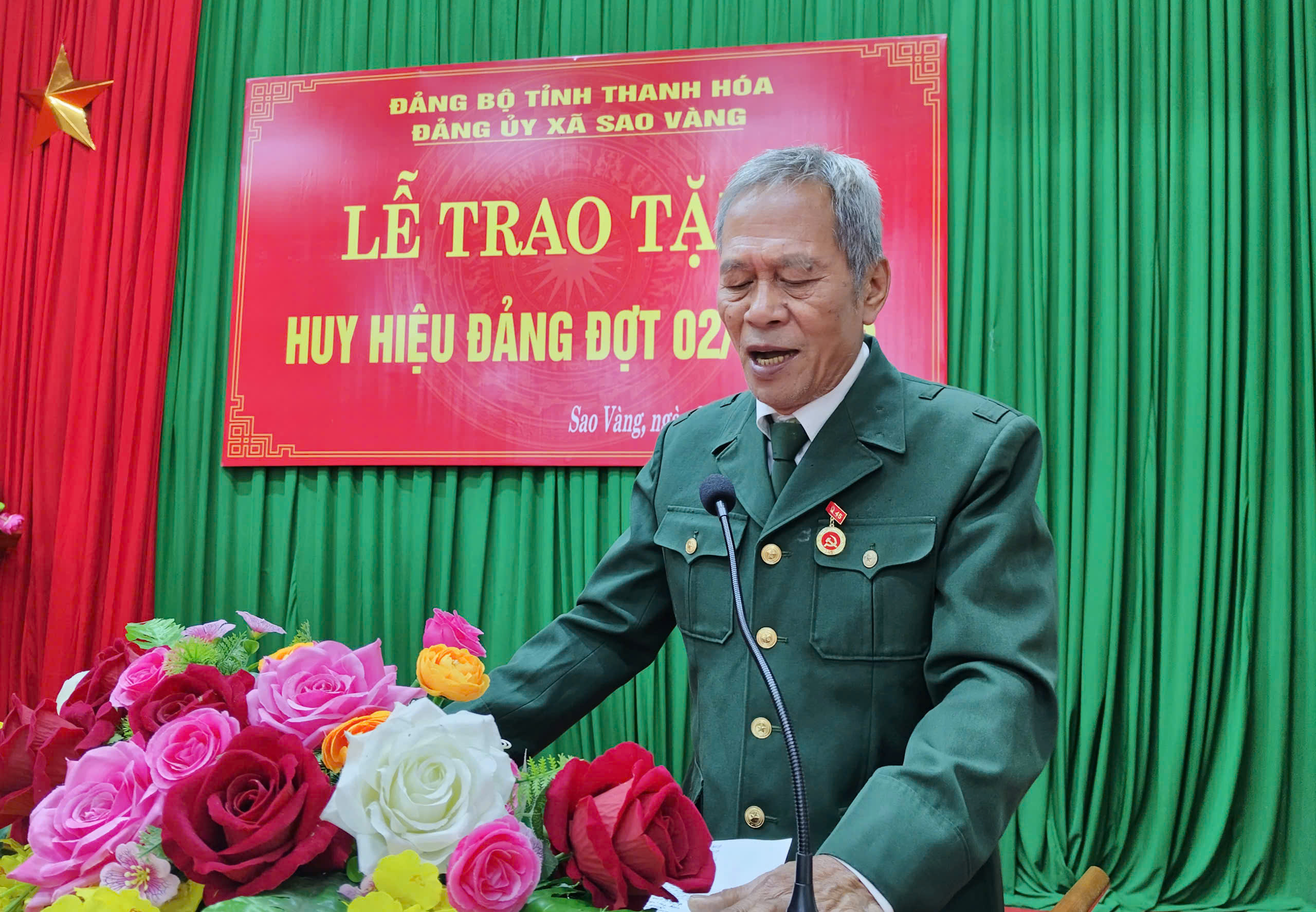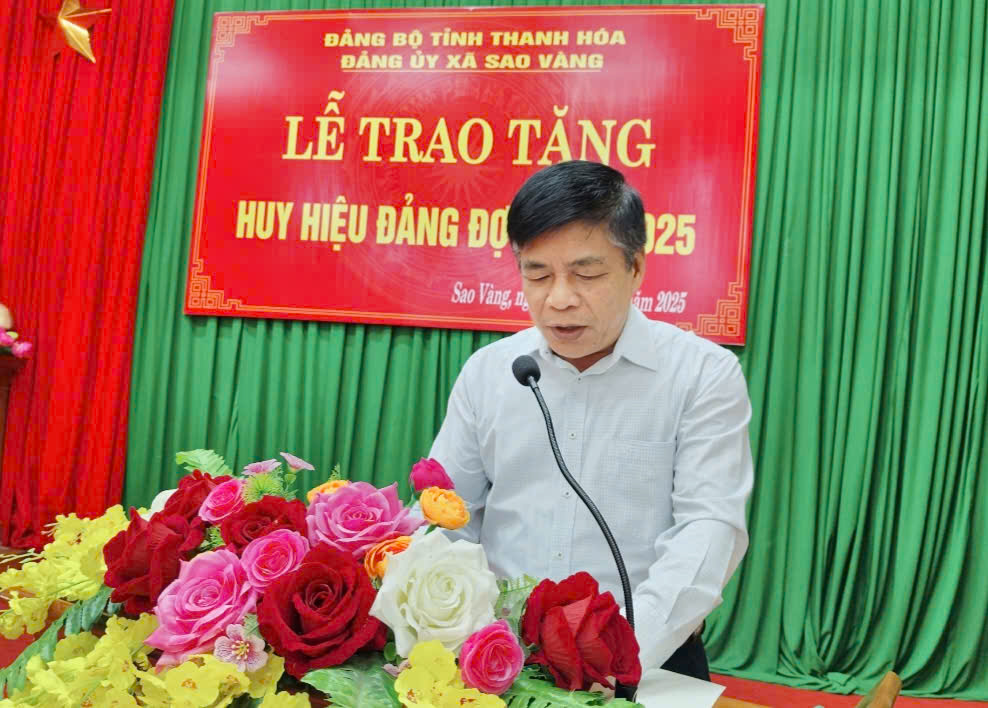 Phát biểu tại buổi lễ, đồng chí Bí thư Đảng ủy xã Sao Vàng Nguyễn Minh Hoàng khẳng định: Mỗi tấm Huy hiệu Đảng được trao là biểu tượng thiêng liêng của niềm tin, của ý chí kiên định và lòng trung thành tuyệt đối với lý tưởng cách mạng. Đó không chỉ là phần thưởng cao quý của Đảng, mà còn là niềm tự hào của gia đình, dòng tộc và toàn đảng bộ xã Sao Vàng.