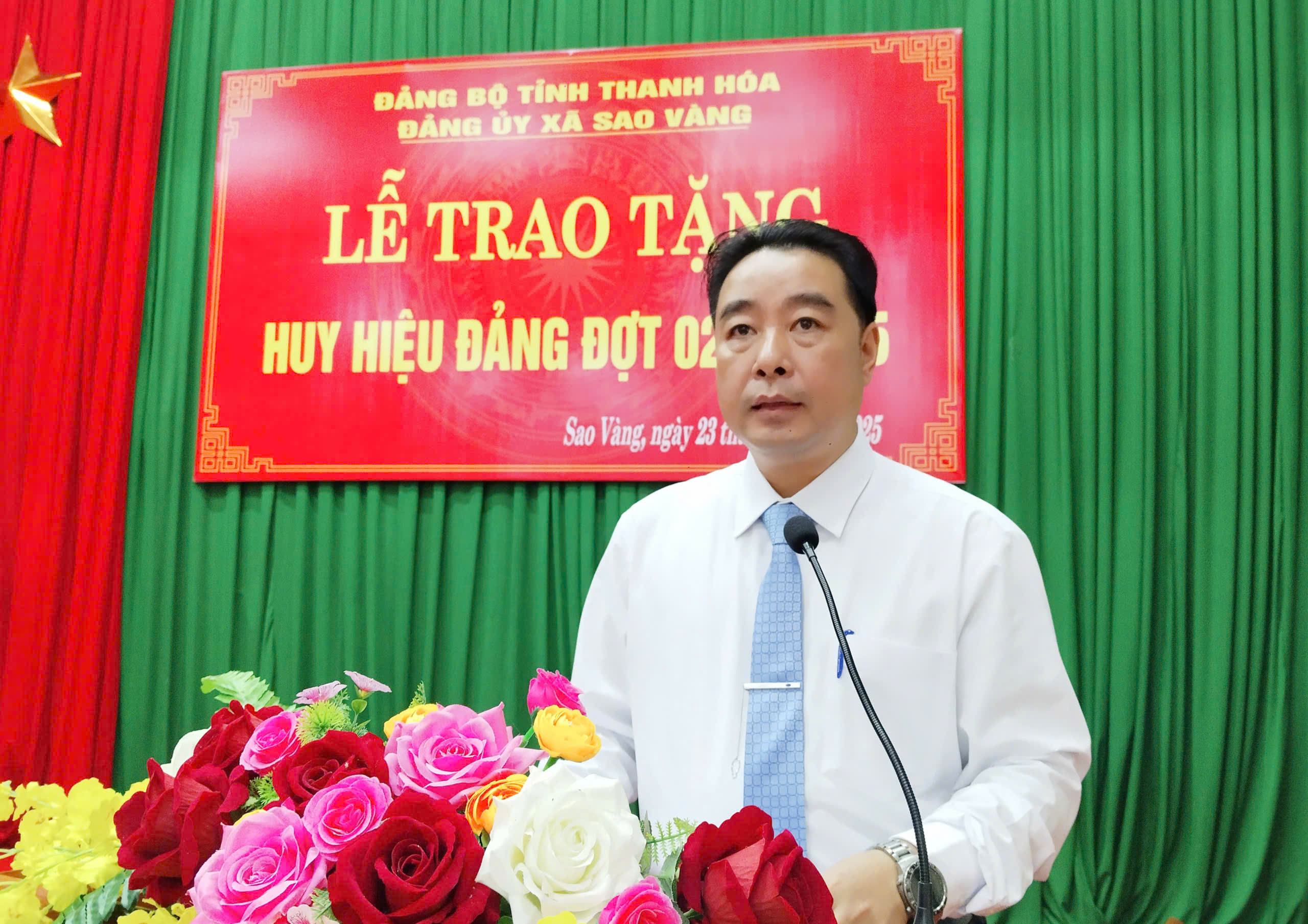 Thực hiện chương trình công tác, chiều 23/10/2025, Ban Chấp hành Đảng bộ xã Sao Vàng tổ chức Lễ trao tặng Huy hiệu Đảng đợt 02/9/2025.